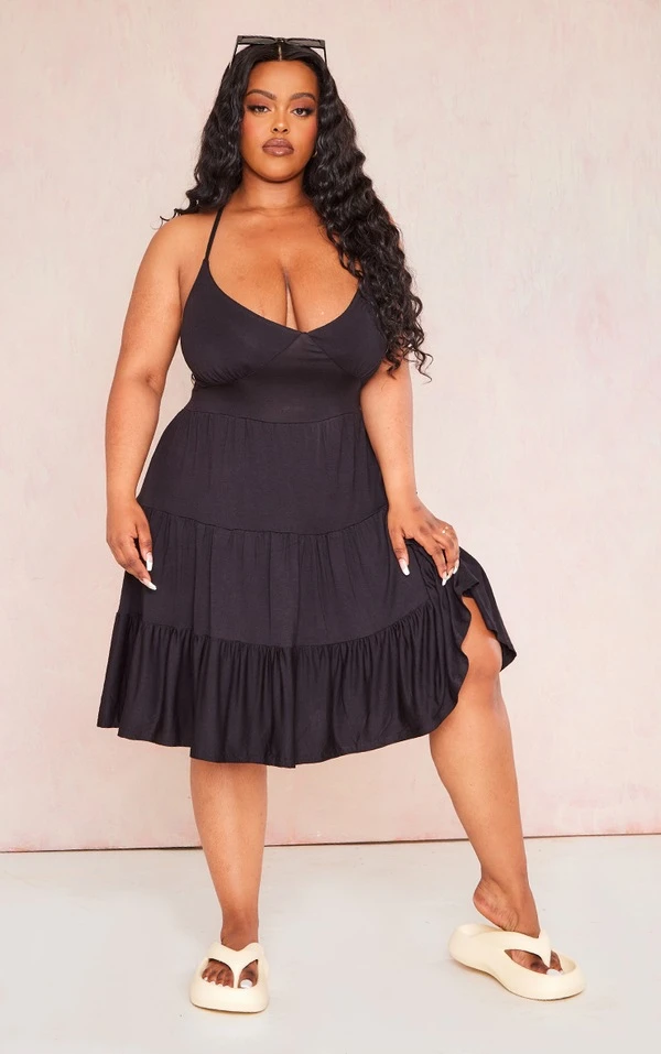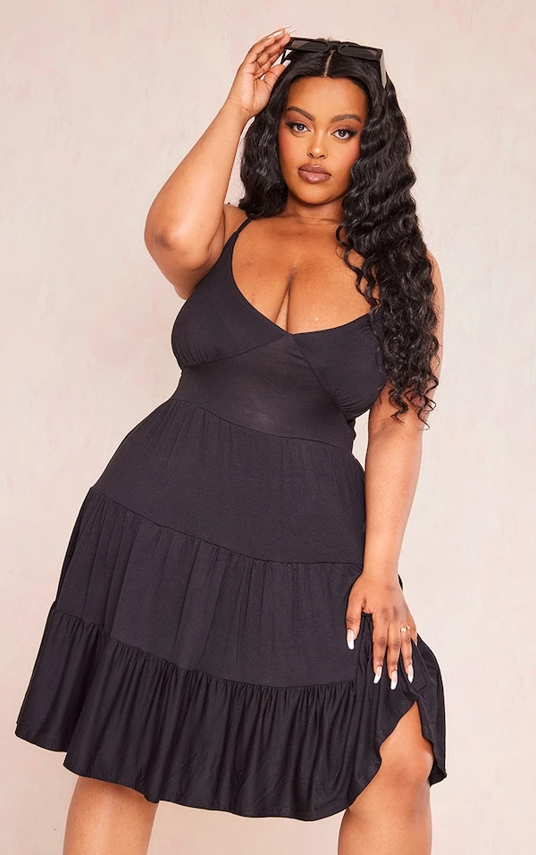 Plus Robe droite en jersey noir à étages