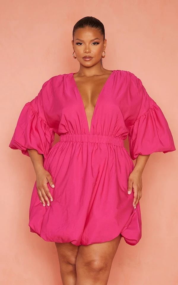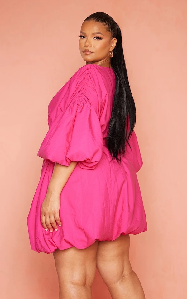 Clairement à shopper la robe droite ! Avec son design bouffant, ses manches ballon et son coloris fuchsia, c’est à porter avec une paire de talons et une paire de boucles d’oreilles XXL. Magnifique !