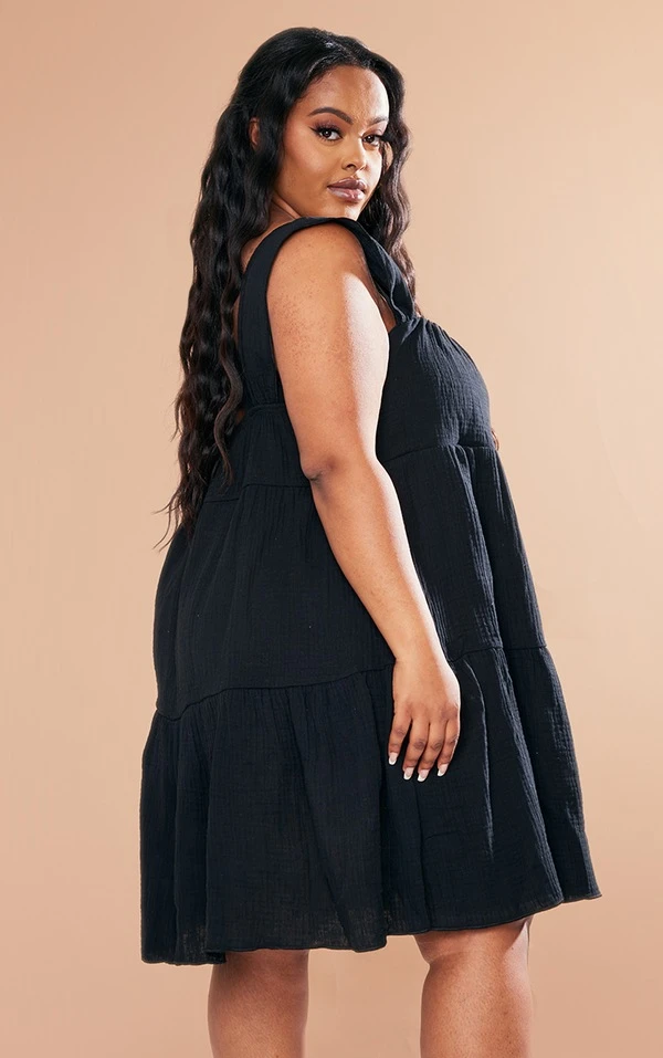 Plus Robe droite noire texturée superposée