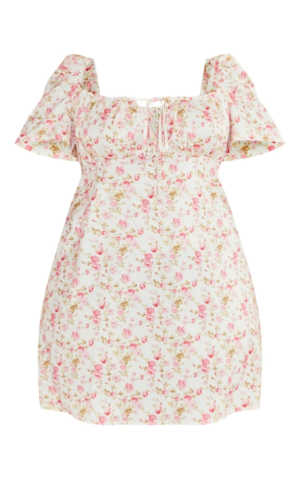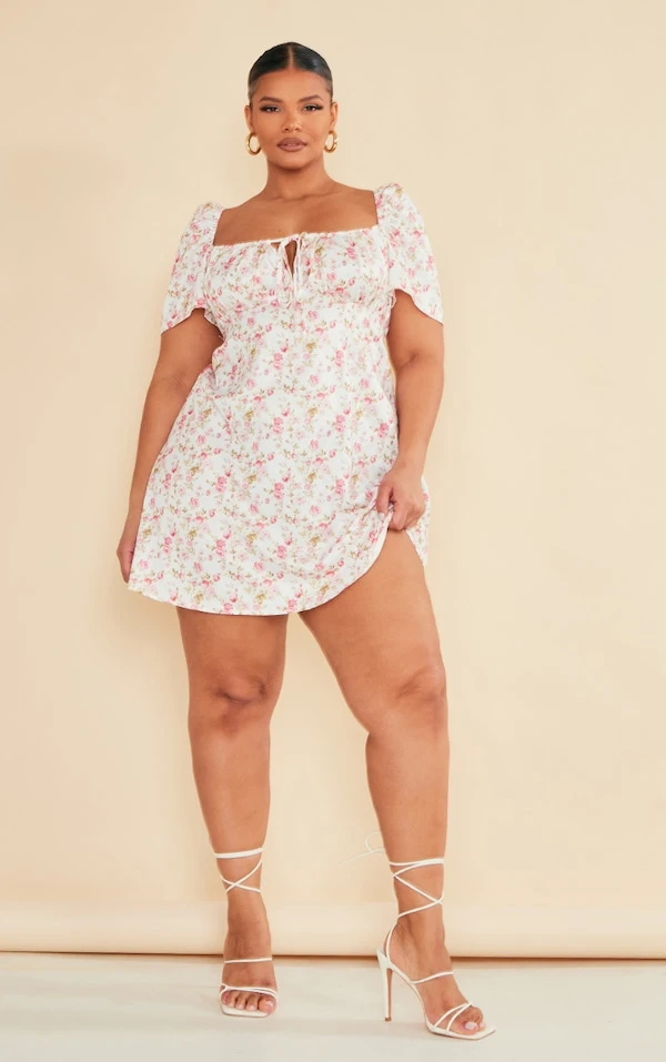 Plus Robe droite rose imprimé petites fleurs à manches bouffantes