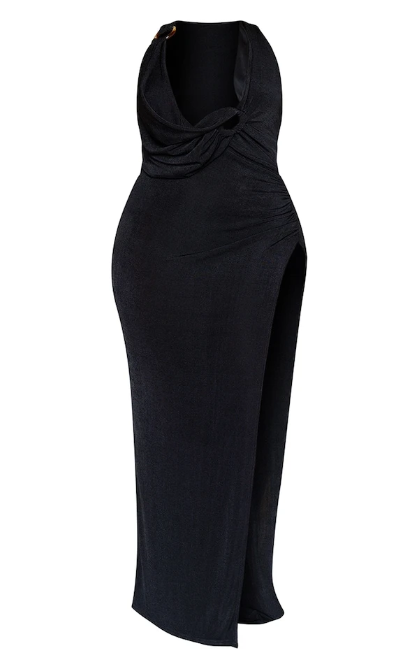 Iconic la robe ! Avec sa coupe longue, son effet drapé, son design fendu et son noir indémodable, sans oublier le détail de son anneau, elle nous a fait craquer. Il ne manque qu’une paire de talons et you go girl !