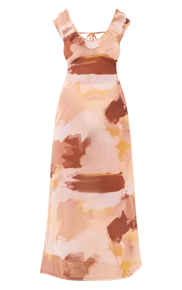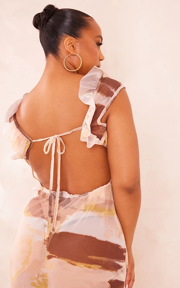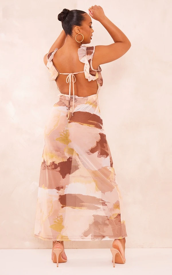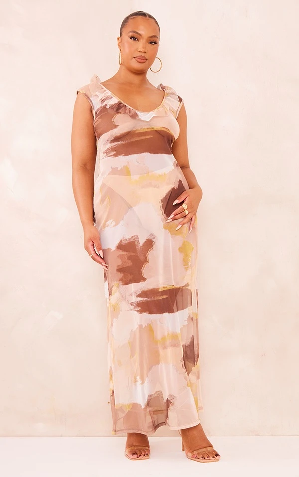 Canon, cette robe à la coupe longue super glamour. On aime la douceur de sa couleur crème, sa matière en mesh à imprimé et le détail de ses volants. Portée avec une paire de sandales et quelques accessoires, cette robe longue vous assure un max de style !