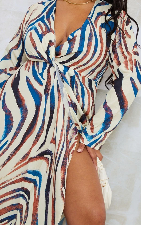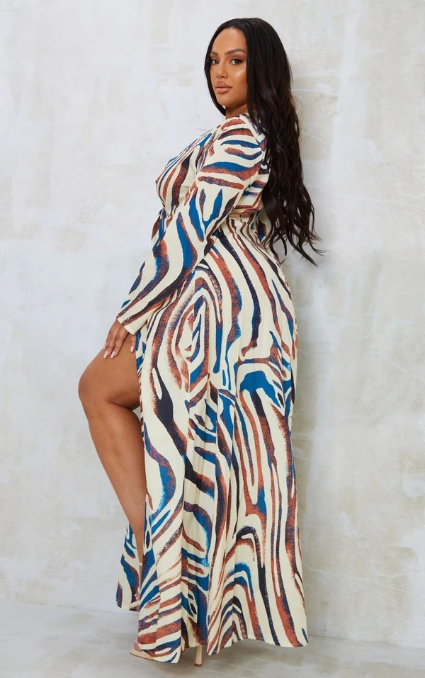 Plus Robe longue gris pierre imprimé zèbre à torsade