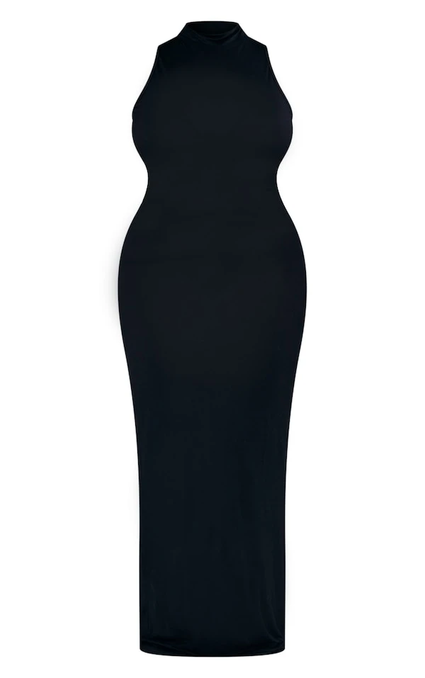 Plus Robe longue noire à col montant