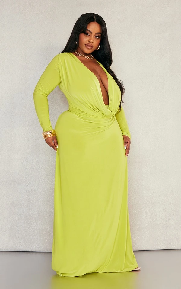 Acidulée juste comme il faut dans cette robe à la coupe longue ! On adore son design à col très bénitier et son coloris vert citron qui fait très plaisir. Plus qu’à enfiler une paire de talons hauts et quelques accessoires fins. C’est aussi simple que ça !