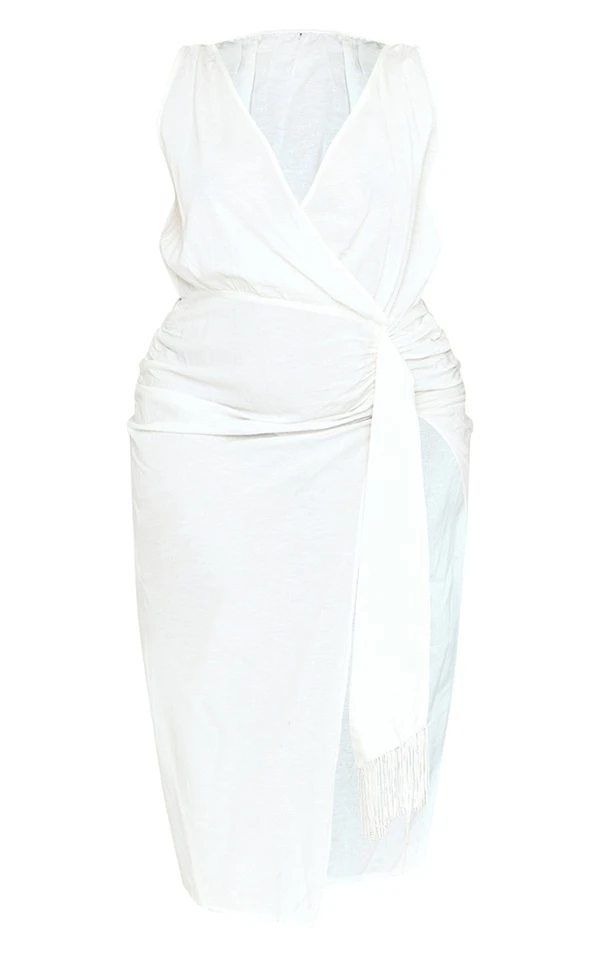 Plus Robe mi-longue en effet lin crème à détail drapé