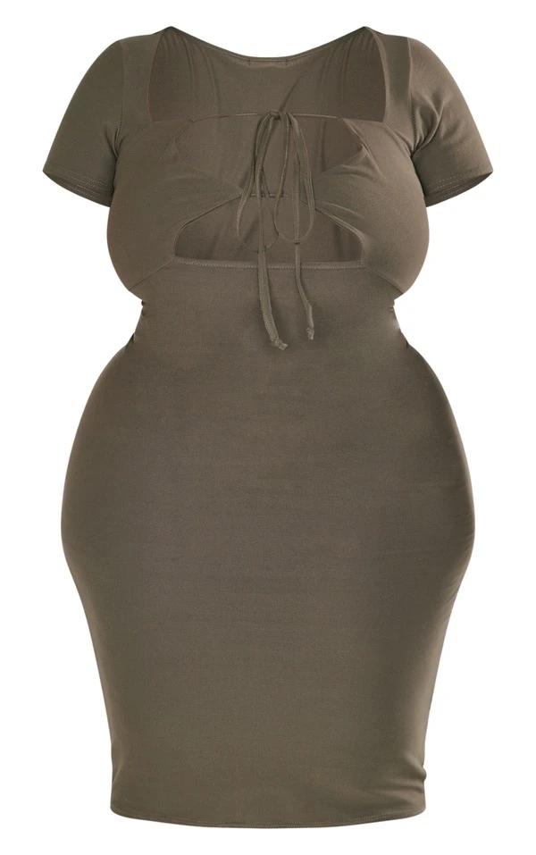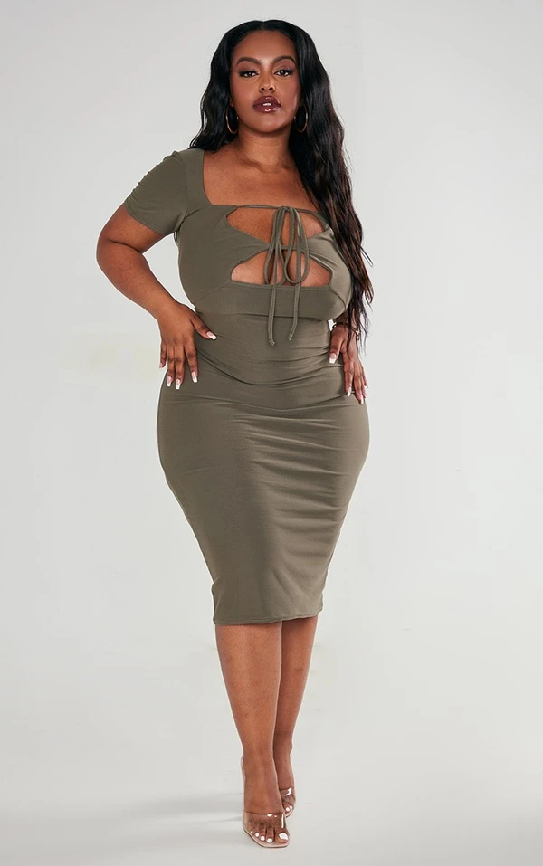 Plus Robe mi-longue en jersey doux kaki découpée sur le buste