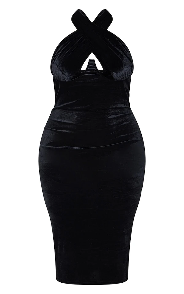 Plus Robe mi-longue en velours noir croisée devant à armatures