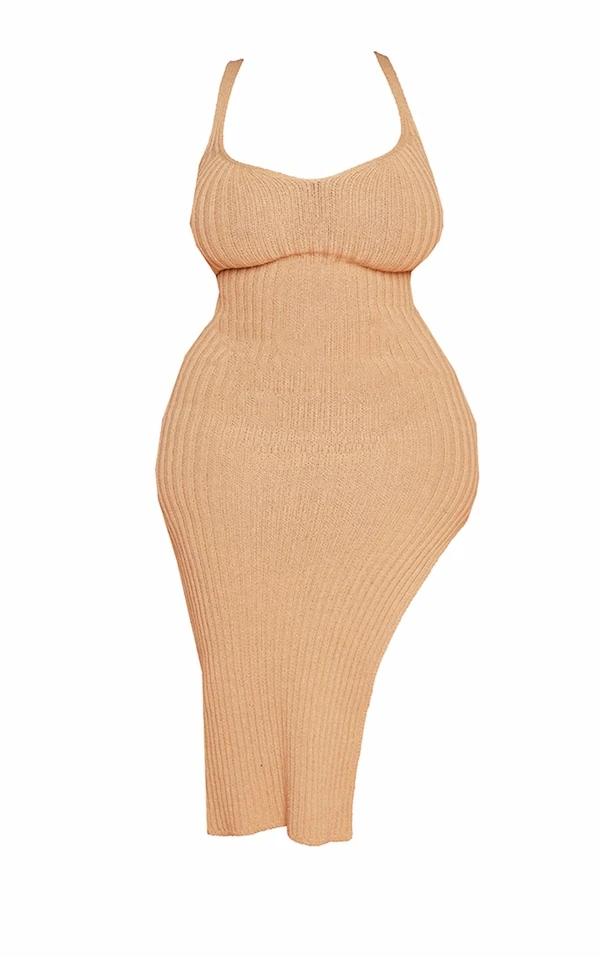 Plus Robe mi-longue gris pierre à côté fendu