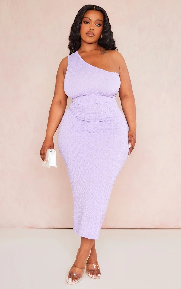 Plus Robe mi-longue lilas effet bulle texturée asymétrique
