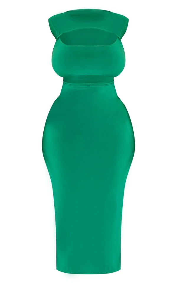 Coup de coeur sur cette robe mi-longue ! Sa coupe moulante vous met en valeur et on adore l’originalité de sa couleur verte et de ses découpes. Faites un max d’effet en soirée en la portant avec une paire de sandales à talons et quelques accessoires orange. Vous êtes sublime !