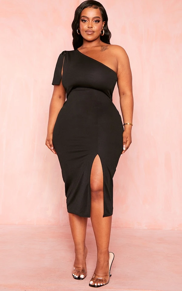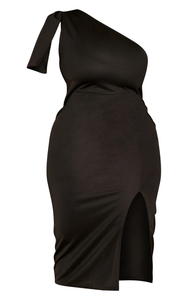 Plus Robe mi-longue noire asymétrique à détail noeud