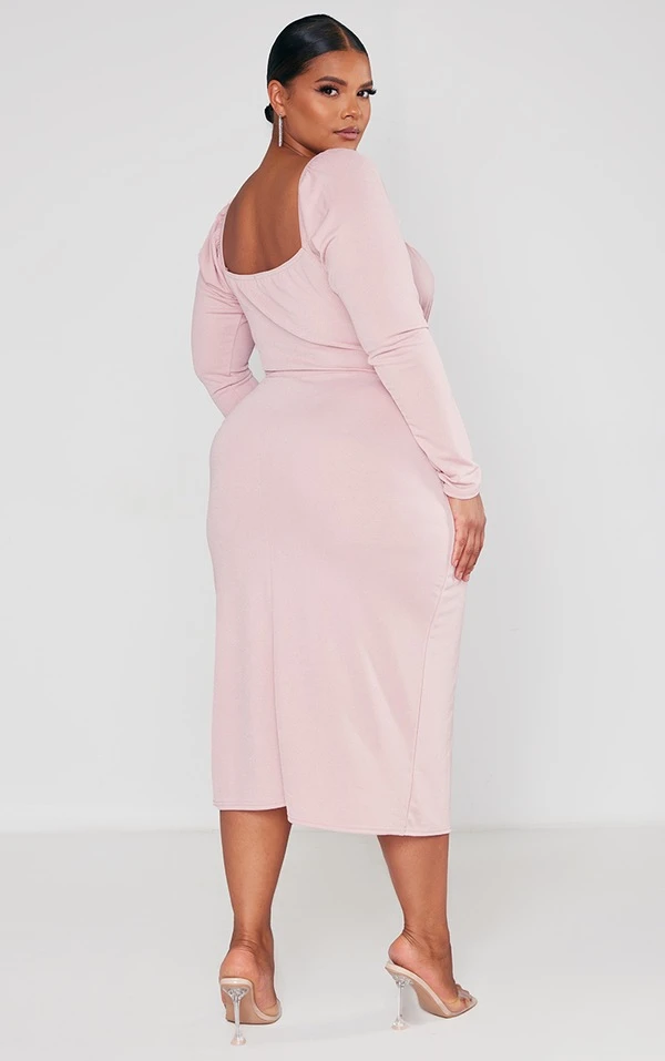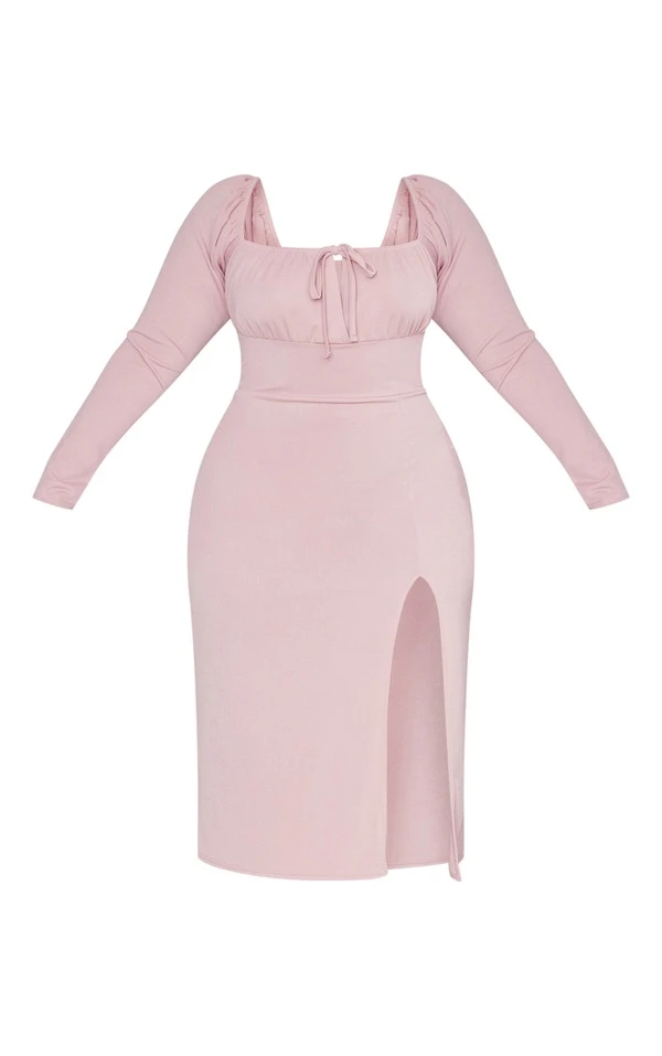 Plus Robe mi-longue rose nouée devant à manches bouffantes