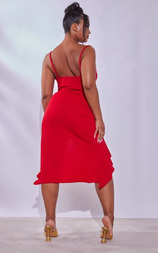 Plus Robe mi-longue rouge crêpée à volants