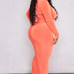 Plus Robe mi-longue sable clair à manches longues et ourlet légèrement volanté