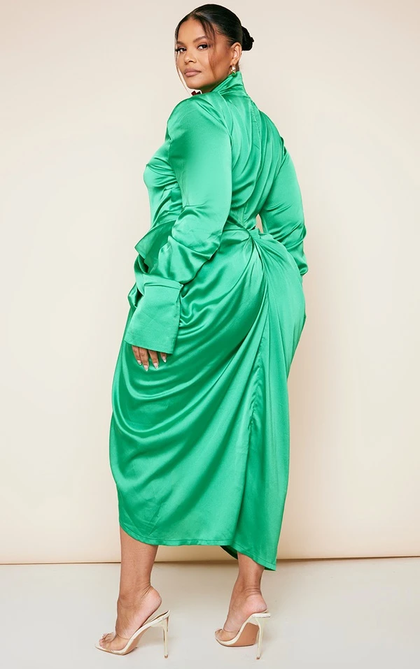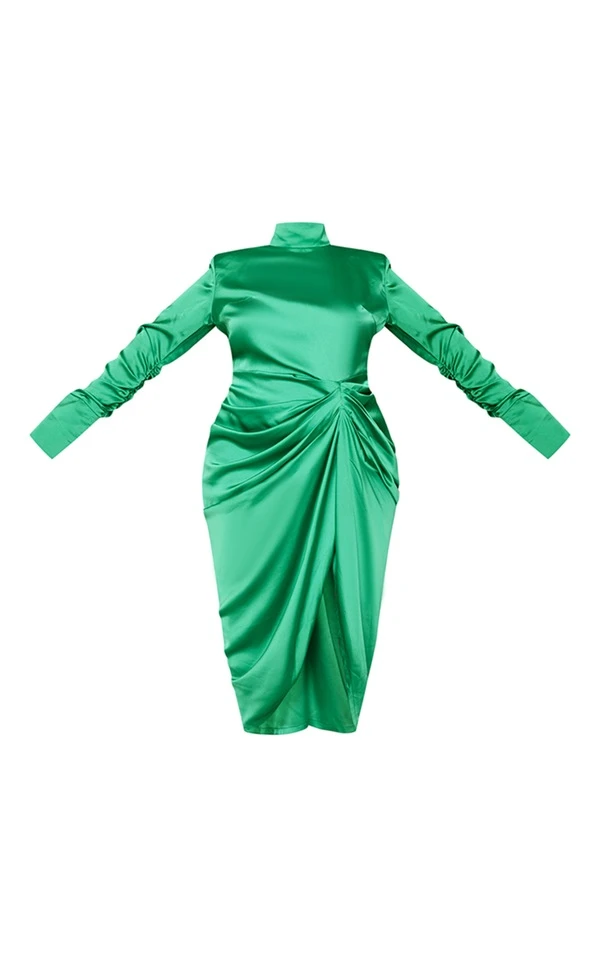 Look de bombe avec cette robe ! On est in love de son coloris vert magnifique et de son design à col montant. N’hésitez pas à la porter avec une paire de talons transparents et des bijoux gold. Vous avez tout compris à la mode, vous !