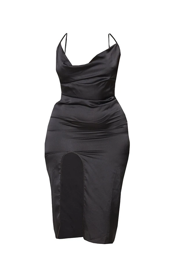 In love de cette robe! Avec sa coupe mi-longue, son satiné luxe et son noir profond, elle est parfaite pour les fans de glam low-key. Une paire de talons, quelques bijoux et you go girl!