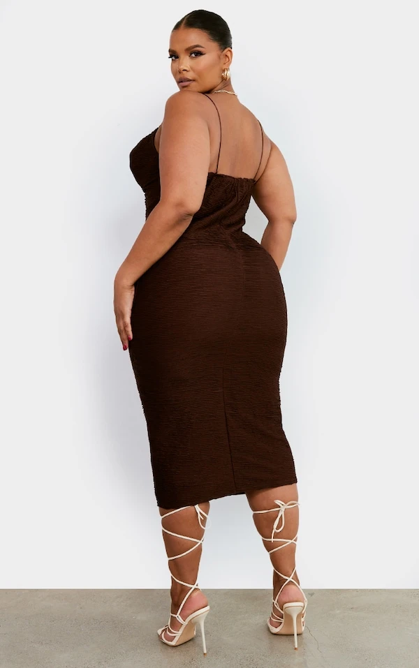 Le glam & vous, toute une histoire de love dans cette robe mi-longue ! Avec sa couleur chocolat, sa matière texturée et ses fines bretelles, impossible de faire plus chic. Pour finaliser ce look classy, il ne manque plus que des talons à lacets blancs et une parure de bijoux. Go faire une entrée remarquée !