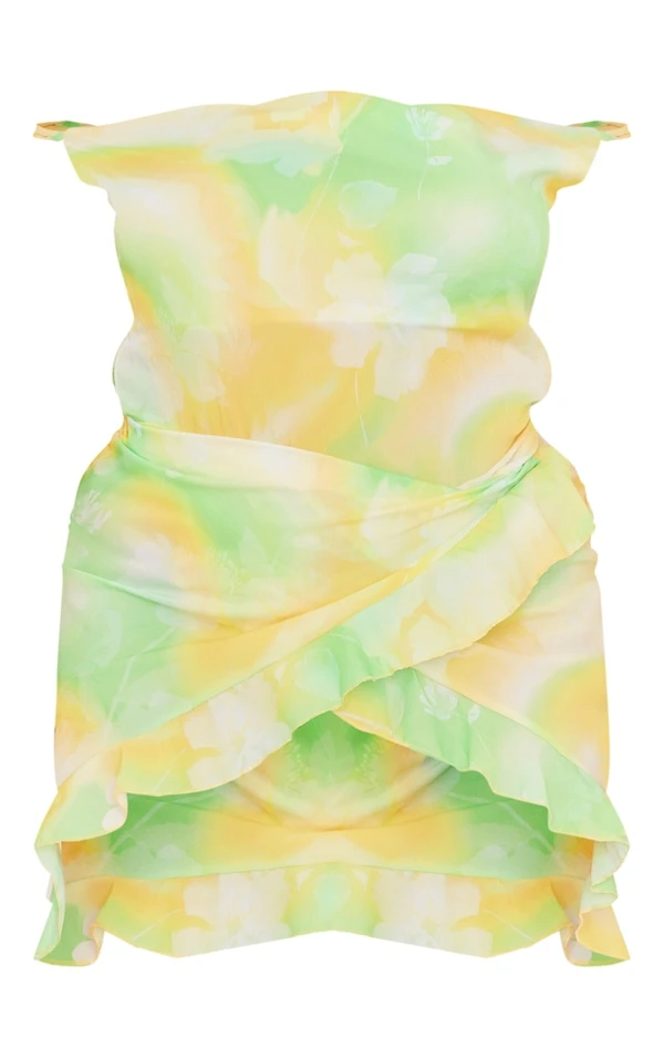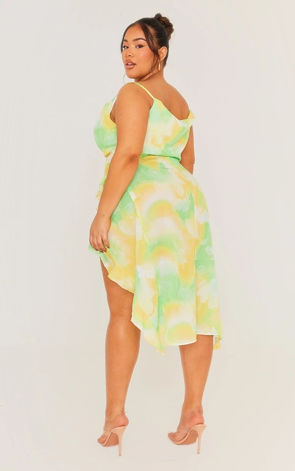 Plus Robe mi-longue verte imprimé abstrait à volants
