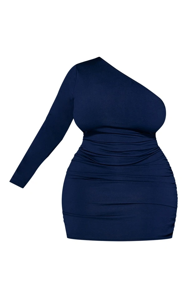 Plus Robe moulante asymétrique bleu marine à manche longue