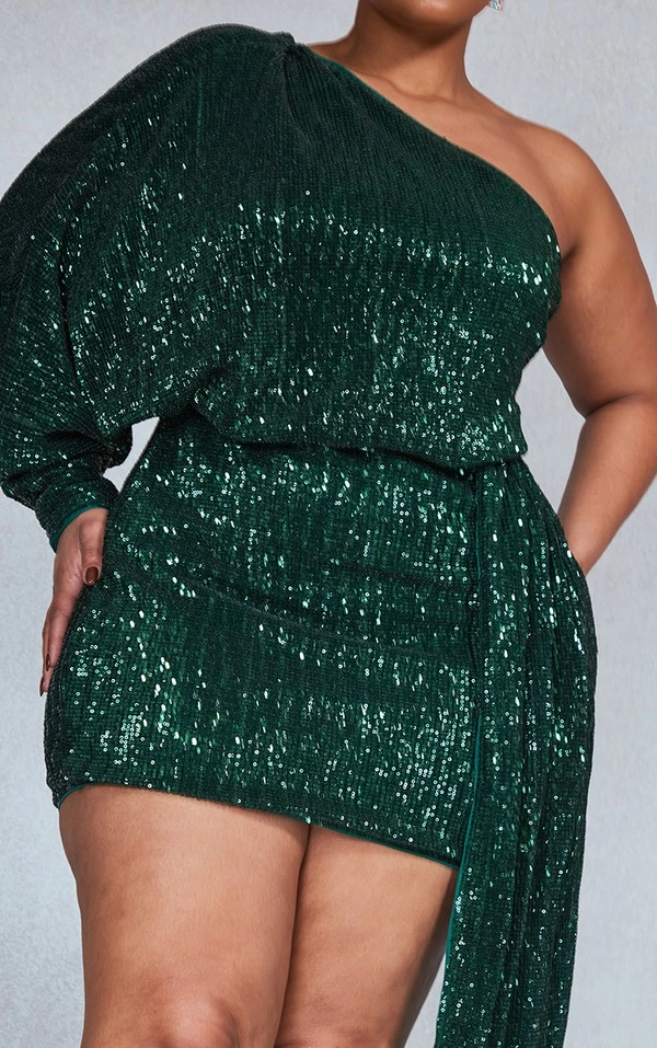 Plus Robe moulante asymétrique en sequins vert émeraude effet drapé