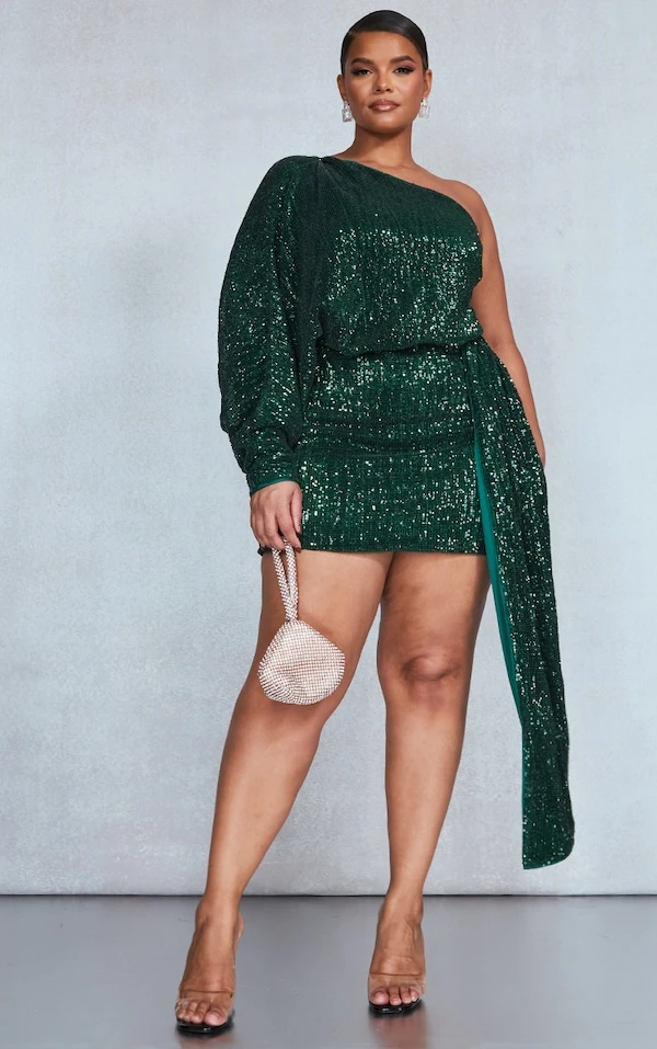 Pour une soirée, cette robe vert émaraude est votre nouvelle meilleure alliée ! Avec sa coupe moulante, son design asymétrique et ses sequins, on ne pouvait pas rêver mieux. On aime la porter avec une paire de sandales lacées et quelques accessoires. Vous aussi ?