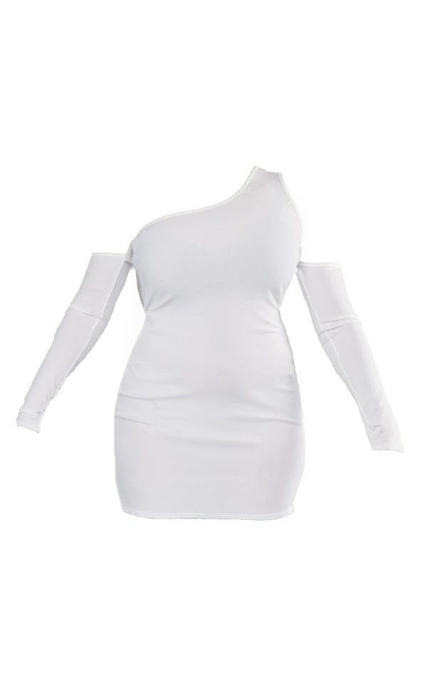 Plus Robe moulante côtelée blanche découpée à épaules dénudées