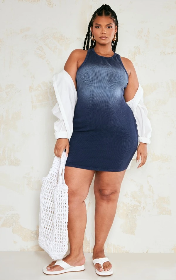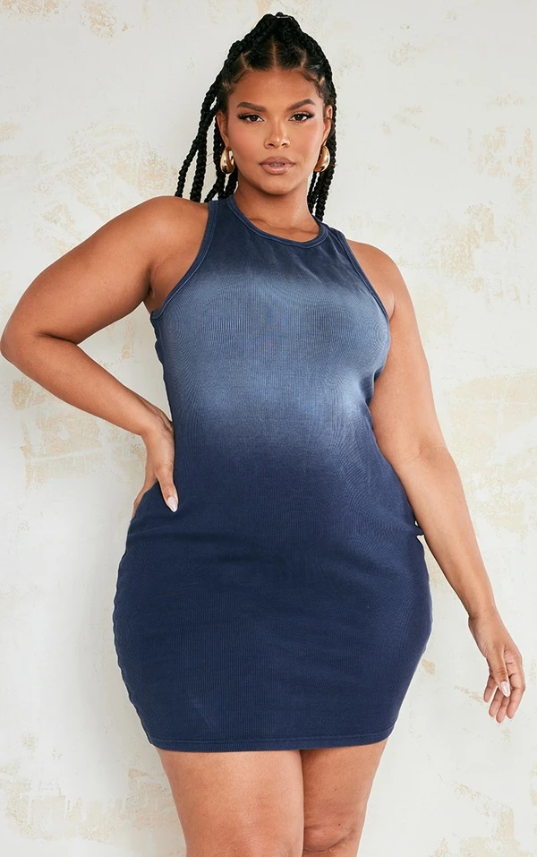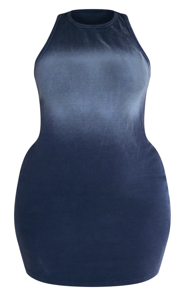 Plus Robe moulante côtelée bleu délavé à col nageur
