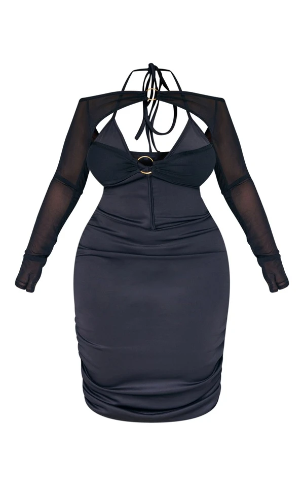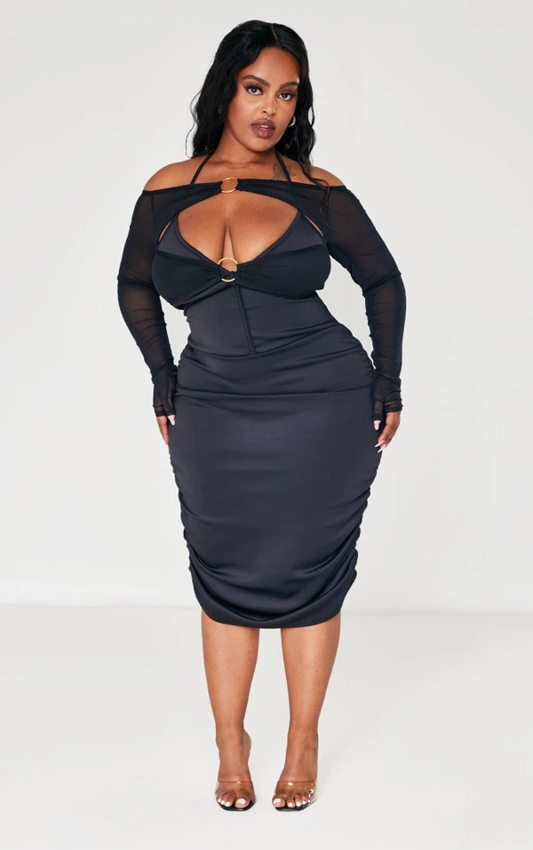 Plus Robe moulante dos nu noire à bretelles et anneaux