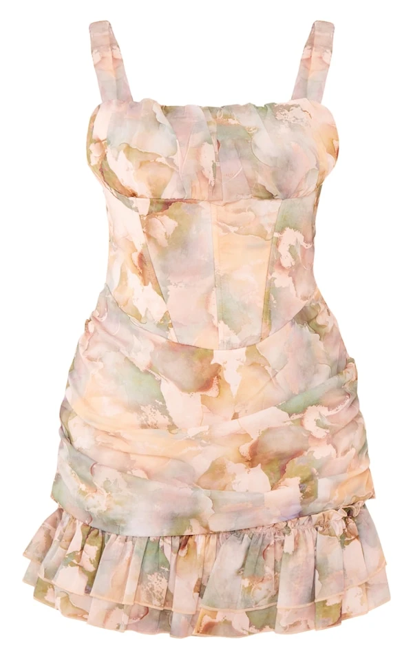 Plus Robe moulante en mousseline de soie vert sauge imprimée à détail corset