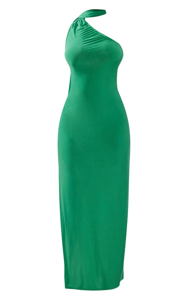 Plus Robe moulante longue vert vif à ras-de-cou drapé