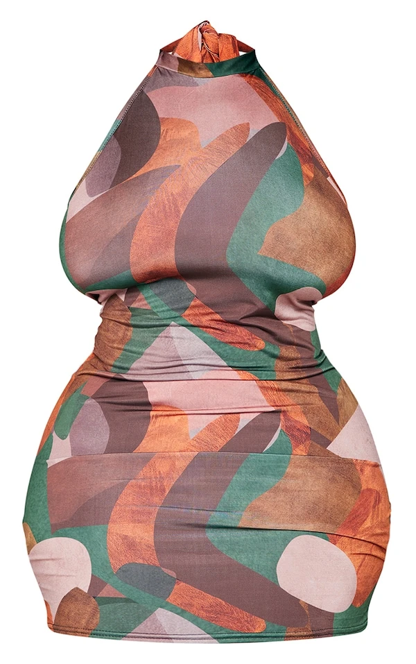 Plus Robe moulante multicolore imprimé abstrait à dos nu