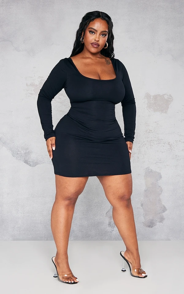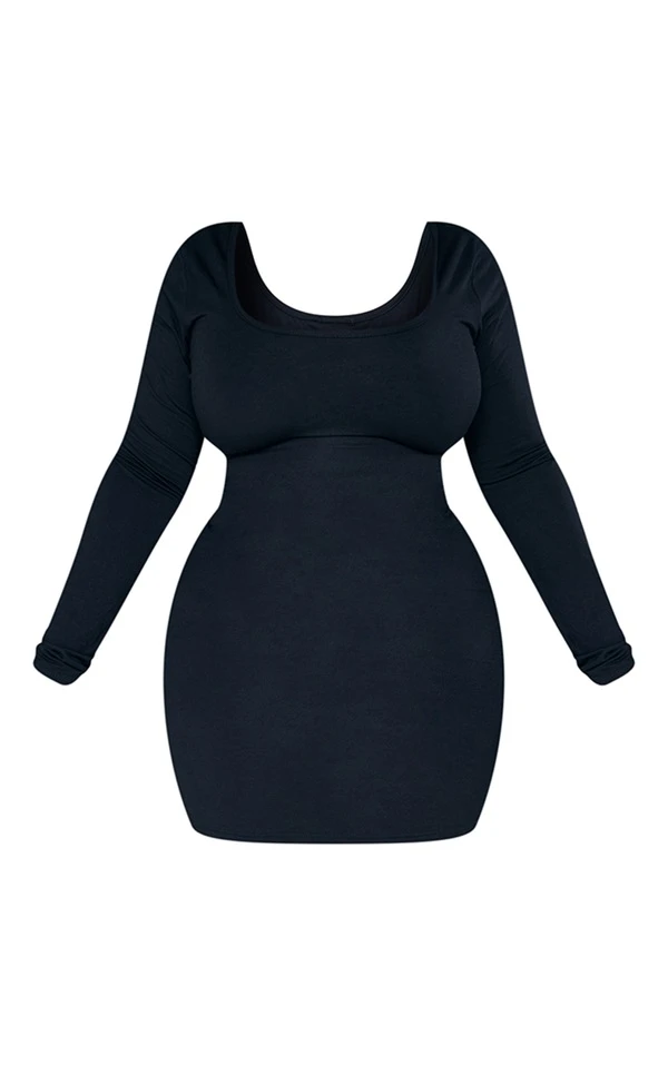 Plus Robe moulante noire à manches longues et col rond