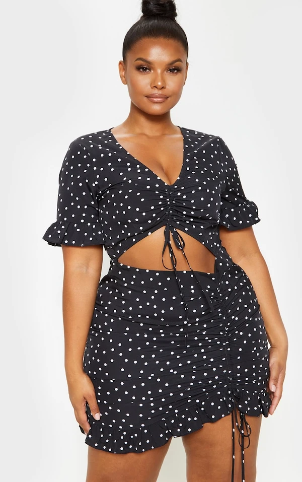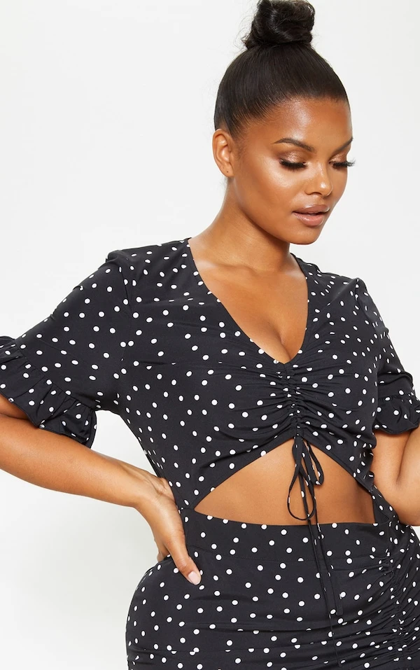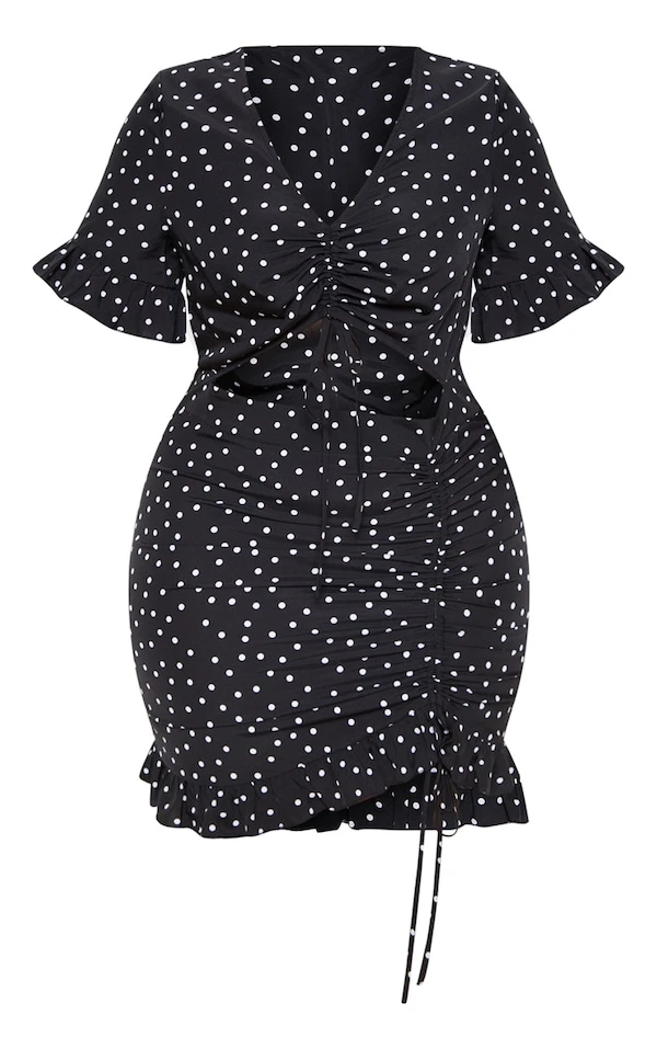 In love des pois ! Sur cette robe à la coupe moulante, au coloris noir, à l’effet froncé et à la découpe ventrale, vous êtes lookée en quelques secondes seulement. Parfaite avec un béret et des talons, pour le total look parisienne.