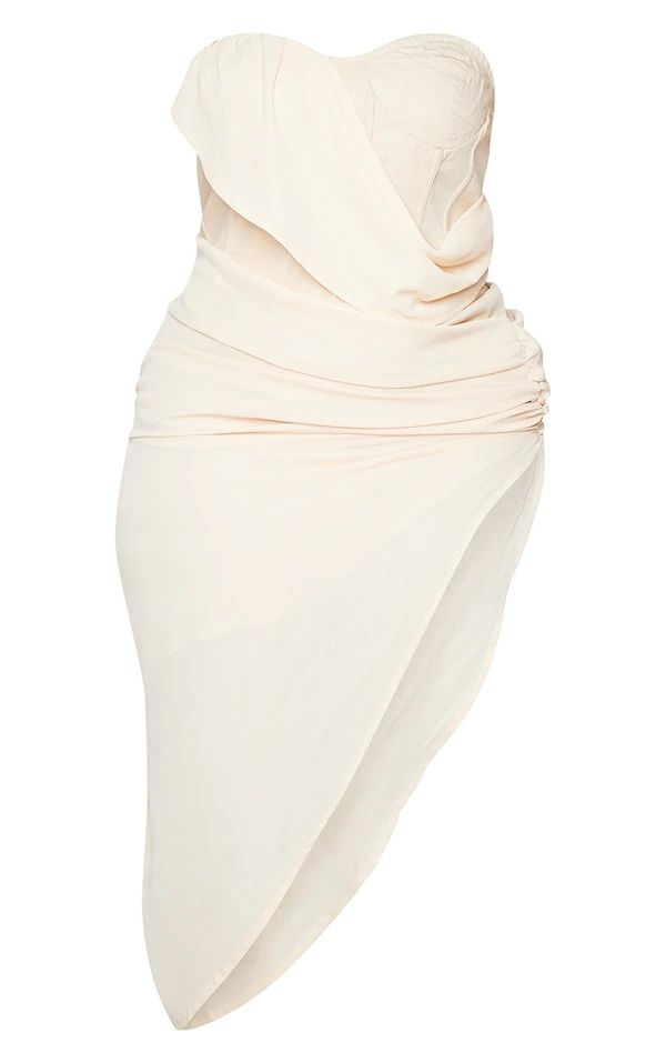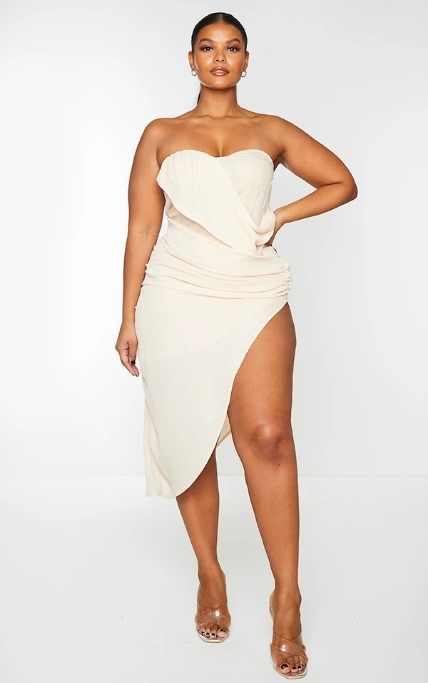Plus Robe moulante nude en mousseline de soie effet drapé à bonnets