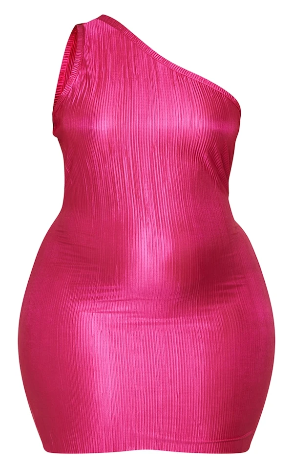 Plus Robe moulante plissée rose vif à épaule unique