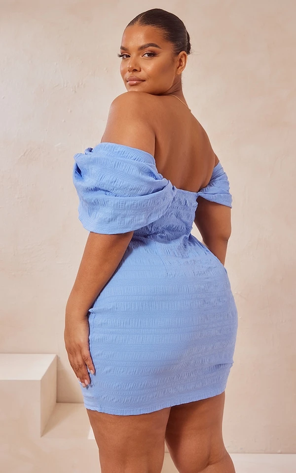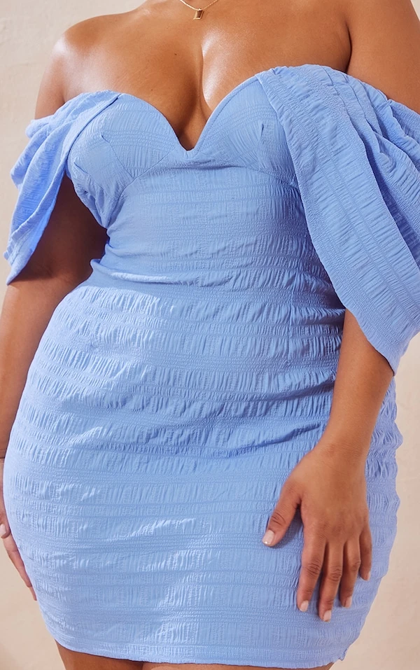 Plus Robe moulante texturée bleu ciel à décolleté en V