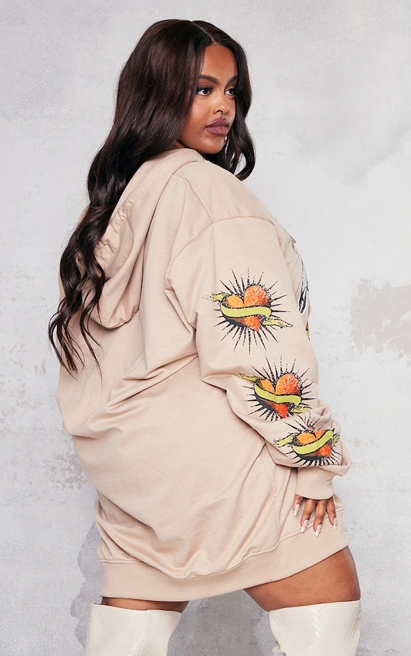 Plus Robe pull gris pierre oversize à imprimé graphique