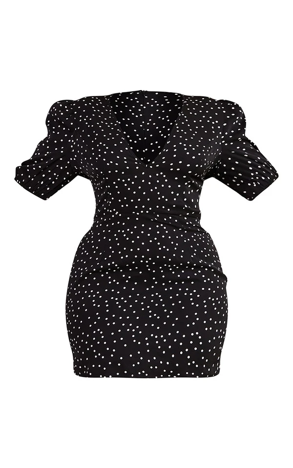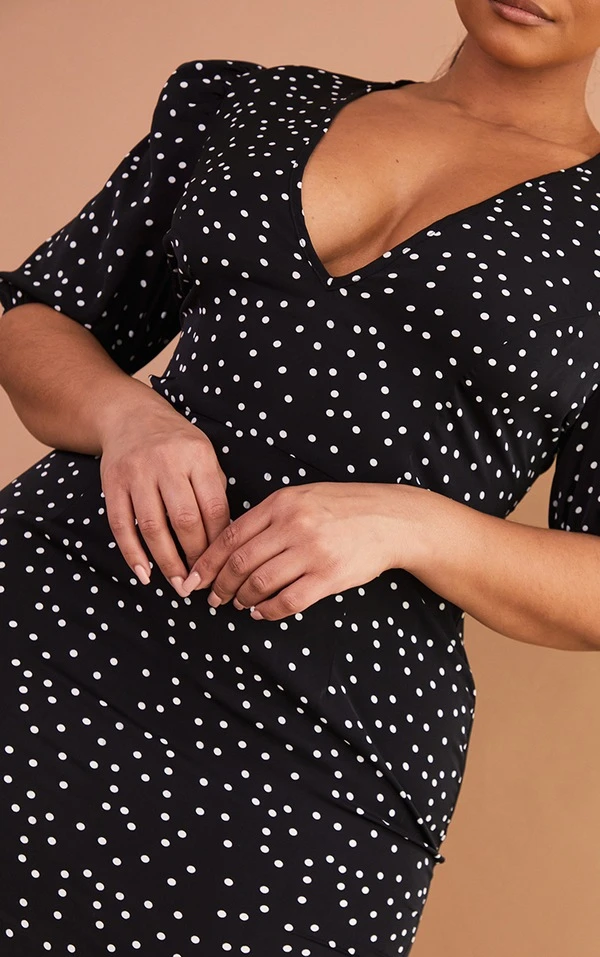 Plus Robe rétro noire imprimé pois à manches bouffantes et col bardot