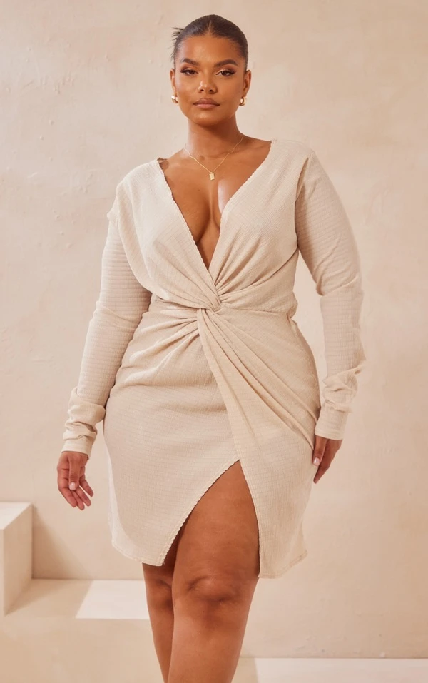 Plus Robe texturée gris pierre à devant portefeuille