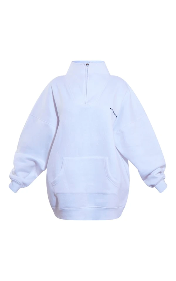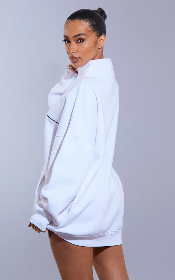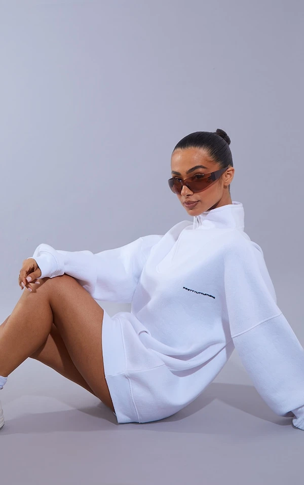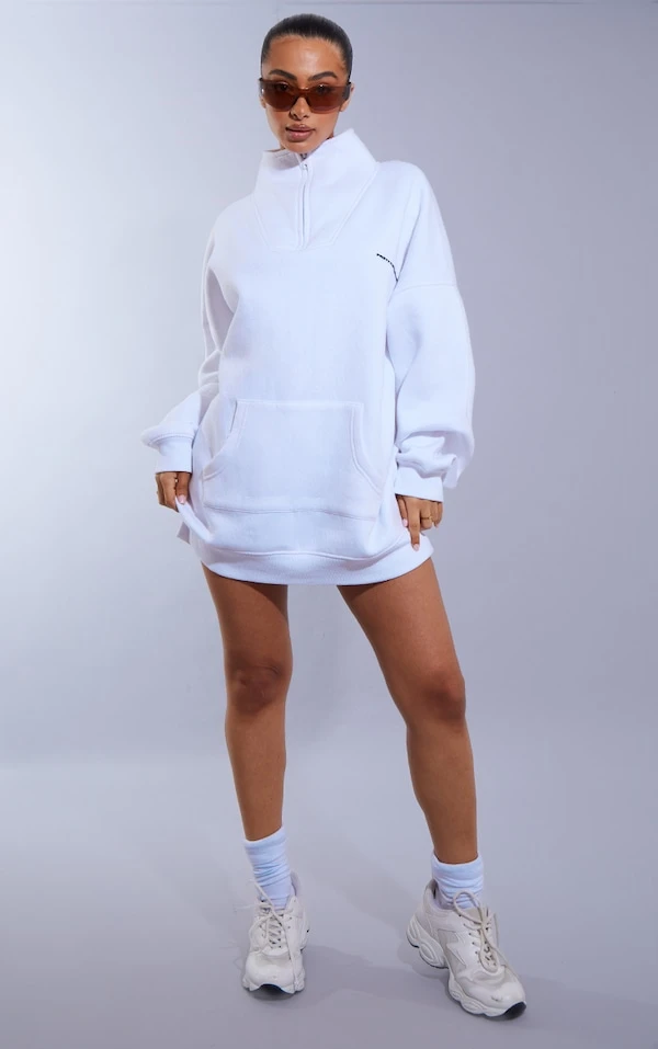 PRETTYLITTLETHING Petite Robe pull blanche à zip trois-quart