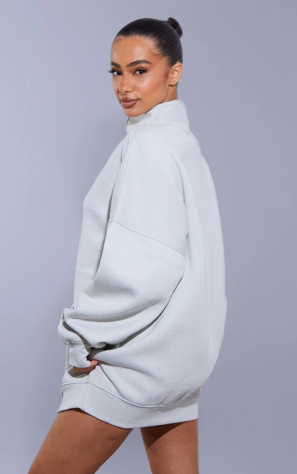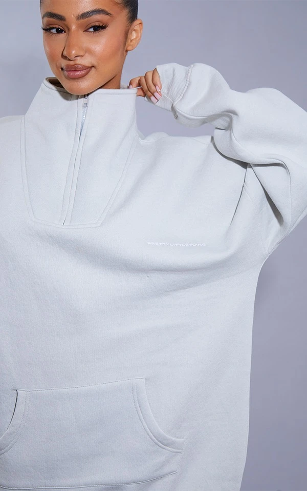 PRETTYLITTLETHING Petite Robe pull gris clair à zip trois-quart
