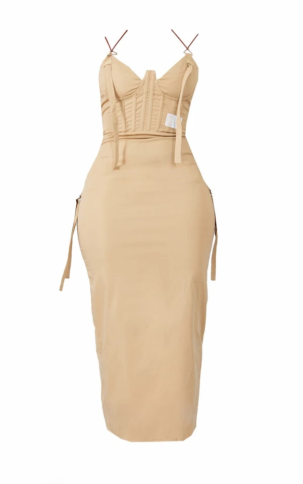 PRETTYLITTLETHING Shape Robe cargo mi-longue gris pierre détail corset
