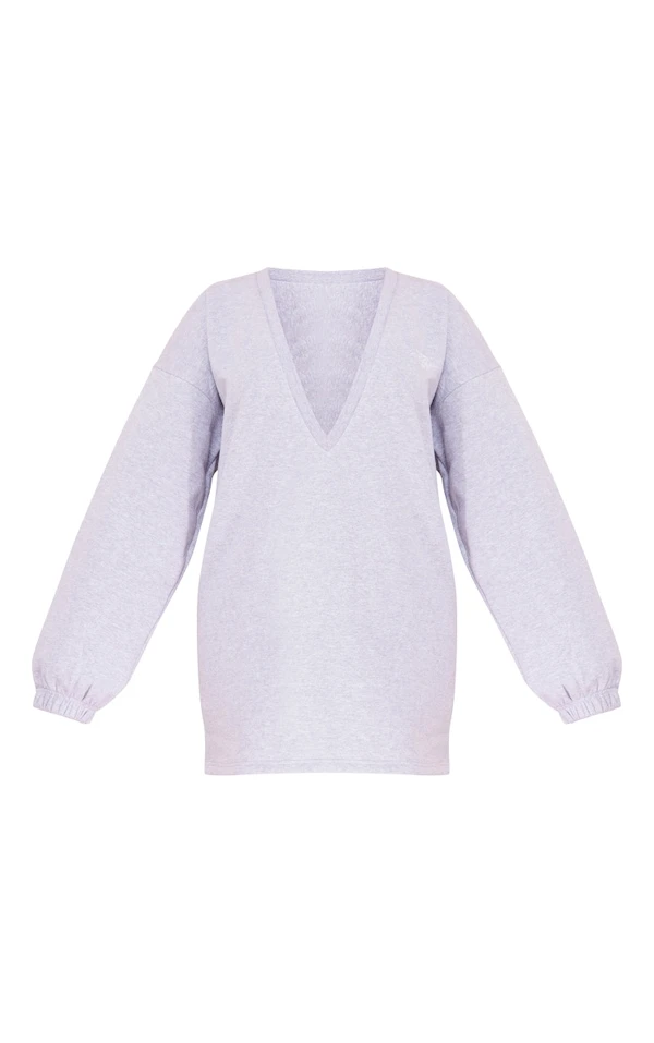 PRETTYLITTLETHING Shape Robe pull gris chiné à décolleté et broderie