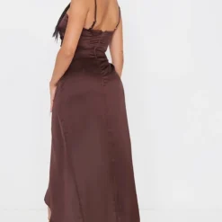 Petite Mini-robe Satinée Fendue Rose à Imprimé Style Asiatique