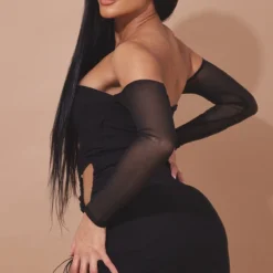 Shape Robe Moulante En Mesh Pailleté Marron Chocolat à Découpes Sur L’avant Et épaules Dénudées