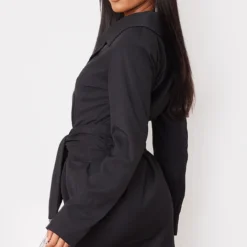 Maternité Robe De Grossesse Asymétrique Noire à Fronces Et Sequins