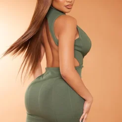Maternité Robe De Grossesse Mi-longue En Jersey Vert Sauge à Décolleté Et Fronces Détail Contours