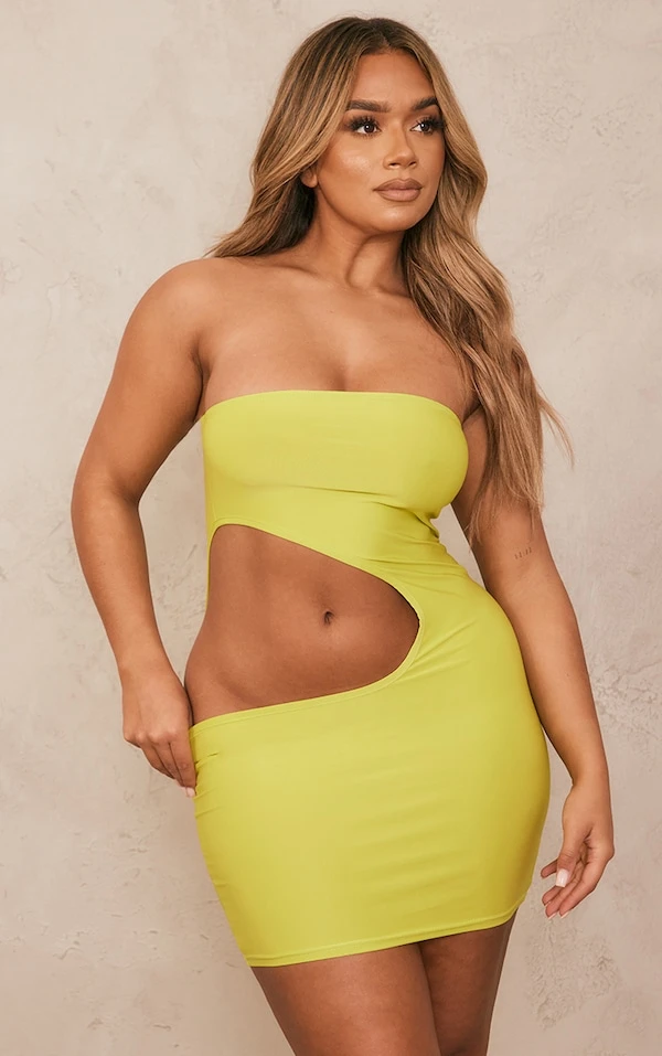 Shape Mini robe moulante chartreuse découpée