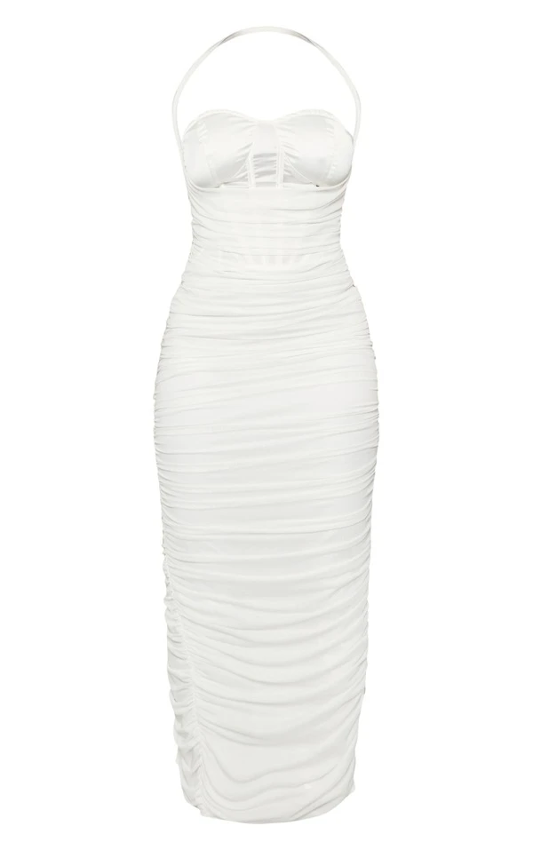 Shape Robe corset longue en mesh blanc à fronces
